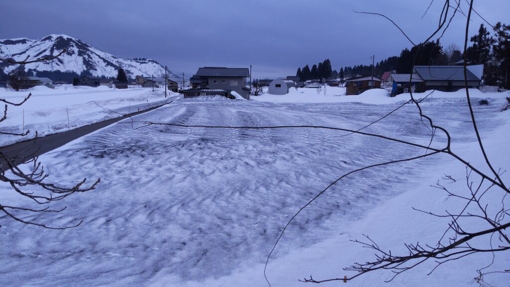 米作り ○○を散布しました。 2022-03-17 motosuke 結構雪が多いので消雪対策のため○○を撒きました。 雪の上に黒い粉?、なんでしょうか もみ殻燻炭です、昨年秋に自作しました、太陽光を吸収し消雪の効果と雪が消えた後は土壌改良資材として土に微生物が棲み易い環境を整えてくれます。とても環境にも植物にも役に立つ優れものです。 まだ積雪は2メートルぐらいはあると思います、4月下旬には育苗場所として使いたいので炭を散布します。